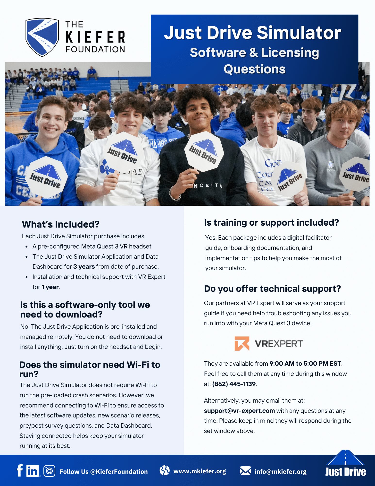 Simulator Resources Just Drive Simulator User Guide CLICK HERE Just Drive Simulator Setup Video Tutorial CLICK HERE Software & Licensing FAQs CLICK HERE Just Drive Curriculum Guide CLICK HERE Corporate Engagement Guide CLICK HERE Overview & Use Case Scenarios CLICK HERE